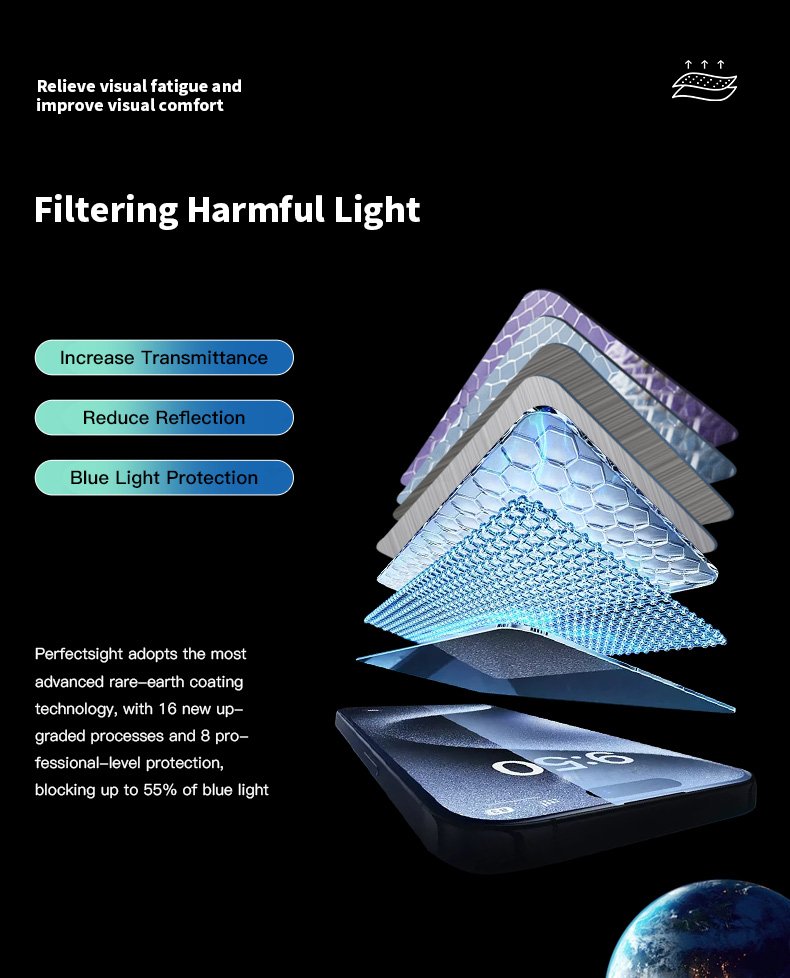 Utilizing rare earth coating technology, this upgraded Screen Protector relieves visual fatigue and safeguards your family's eye health.